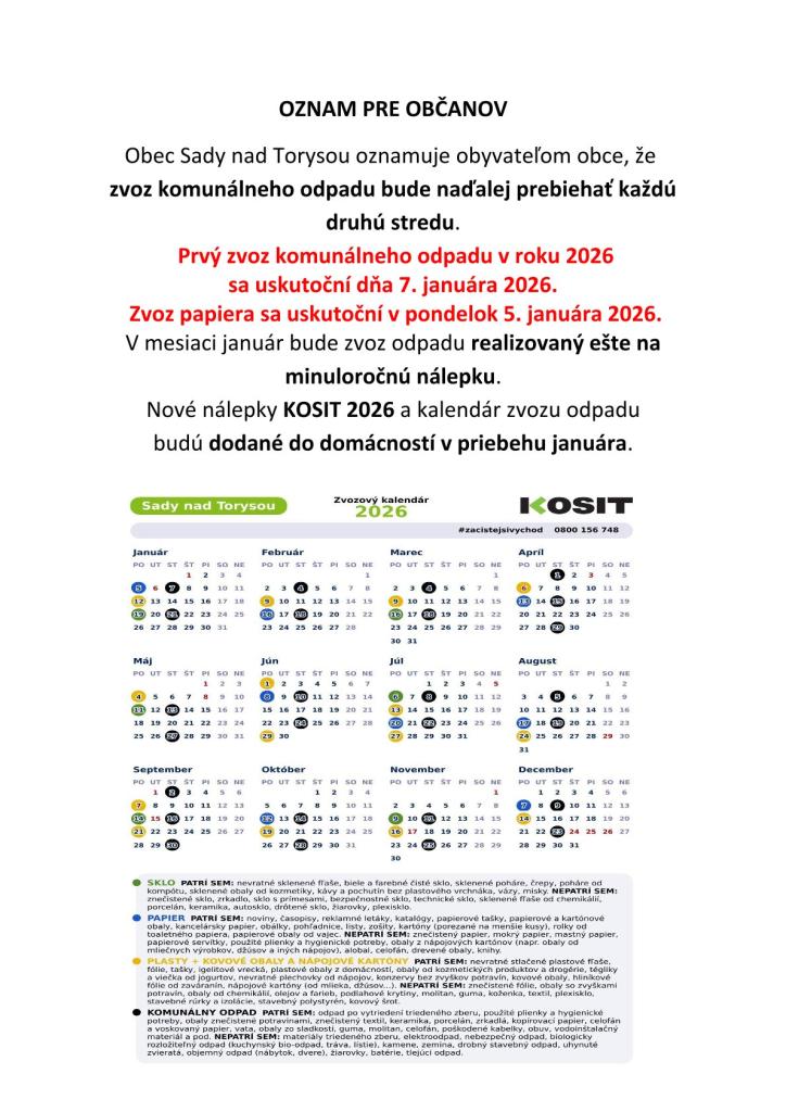 Oznam pre obyvateľov obce