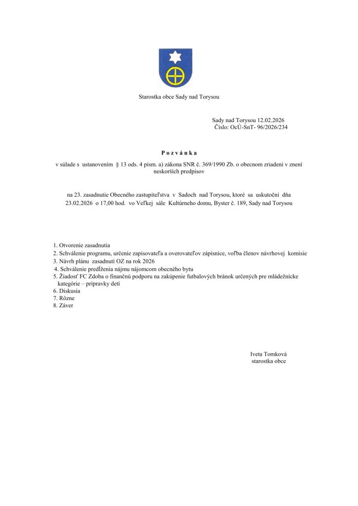 Pozvánka na OZ 23.2.2026 o 17:00hod.