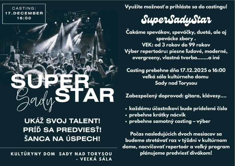 SuperSadyStar ukáž svoj talent - Casting 17.12.2025 o 16:00hod.