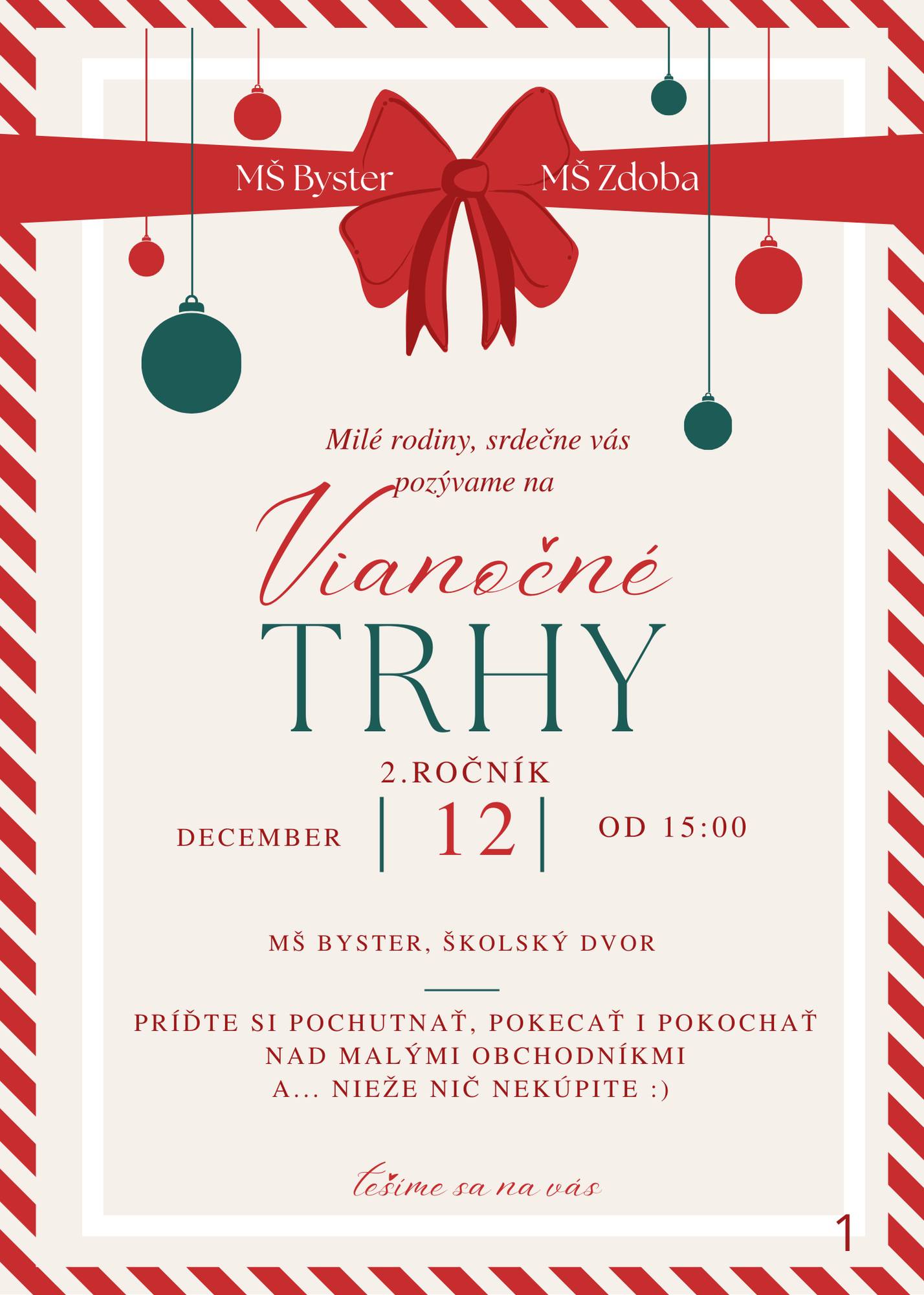 Vianočné trhy 12.12.2025 od 15:00hod. školský dvor MŠ Byster