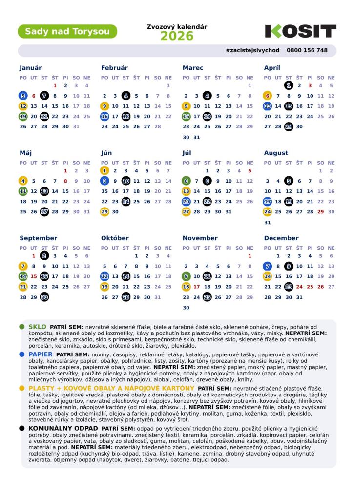 Zvozový kalendár na rok 2026